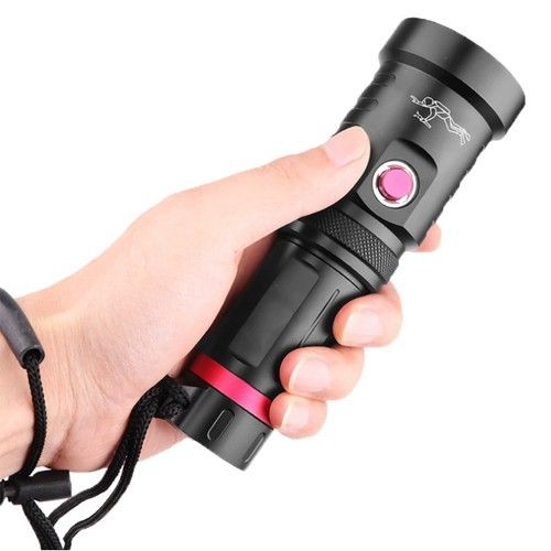 ліхтар, 1 акумулятор 18650, зарядний пристрій 220V, картонна упаковка, ремінець на руку, 2 гумові прокладки