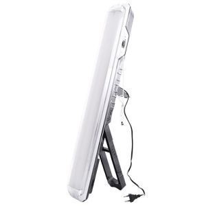 зручна ручка, 2 отвори для кріплення на стіну в вертикальному і горизонтальному положенні, індикатор зарядки, вимкнення або перемикачем, або шнуром, автоматично вмикається після відключення світла та вимикається після його включення, шнур для зарядки ховається в корпус.