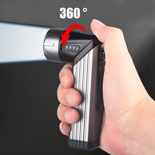 Корпус - противоударный, пылевлагозащищенный, вращающаяся голова на 360 градусов, магнит, красно белый свет от вспомогательного светодиода, индикация уровня заряда батареи