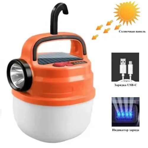 Фонарь кемпинг переносной HB-V70-LED, Li-Ion аккумулятор, солнечная батарея, ЗУ microUSB, Box