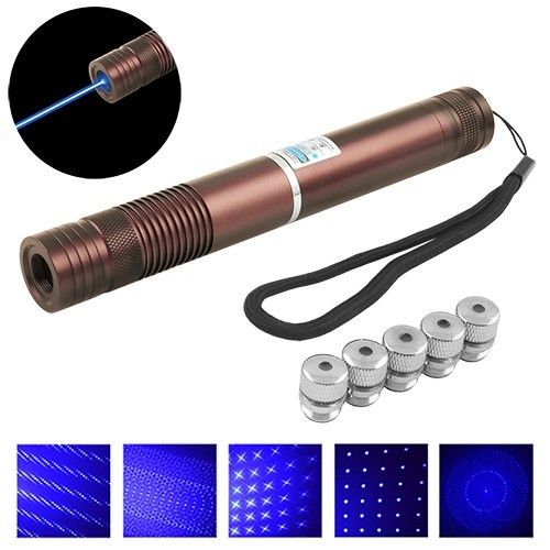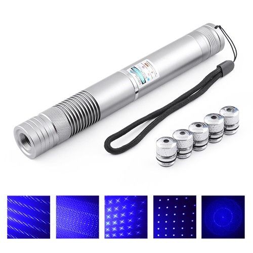 Фонарь-лазер указка синий YX-B008, ЗУ 220V, 2х16340, 5 насадок, Box
