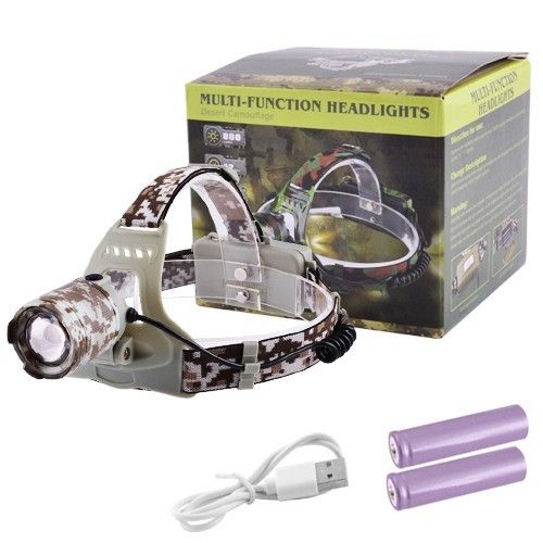 Фонарь на лоб 2130-T6, Military, ЗУ microUSB, 2x18650, , Box