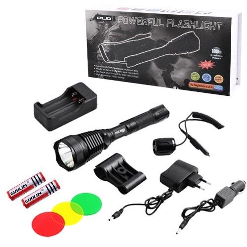 Комплектация:ліхтарик / фільтри-3шт / акумулятор 18650 - 2шт / З/У: 220V и 12V / кріплення під рушницю / виносна кнопка / подарункова коробка